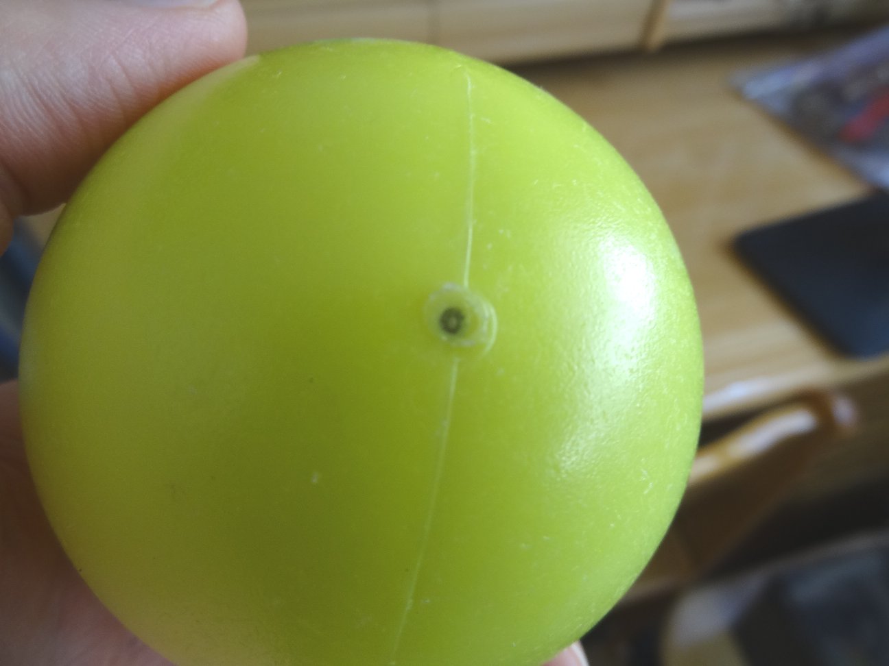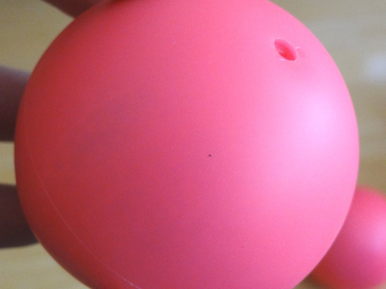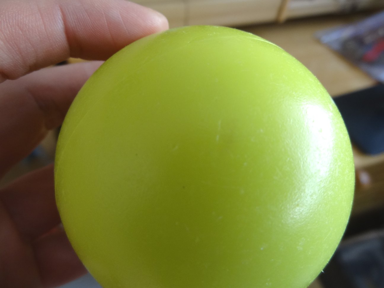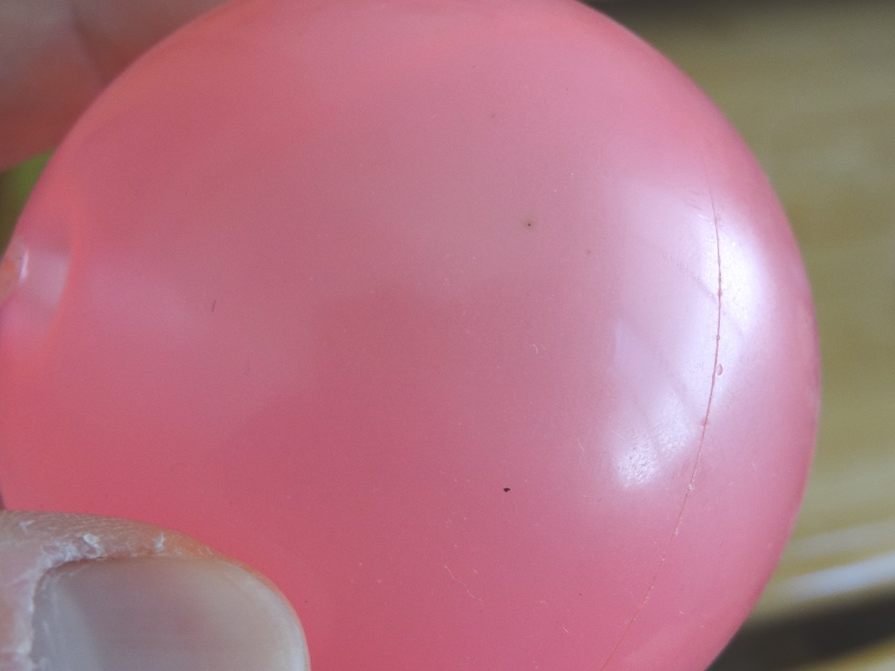 このボールは外で普通に投げていたので、写真(3枚目)のように、ボール全体に傷があります。