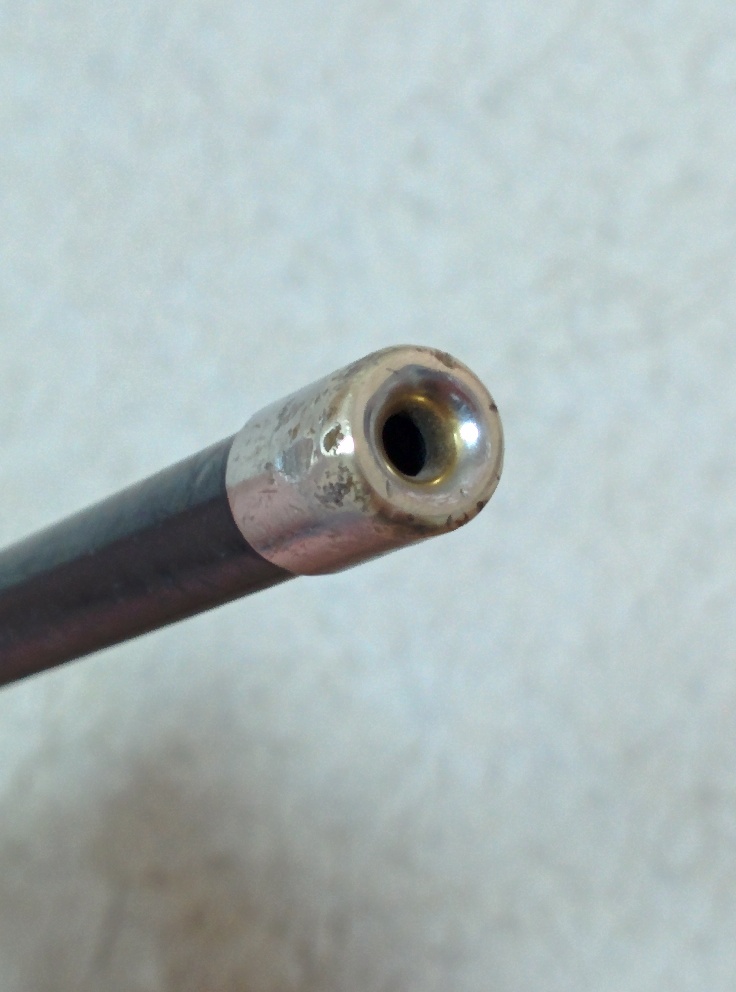 こんなカンジで、スティックの先端に当たる部分が細くなっています。